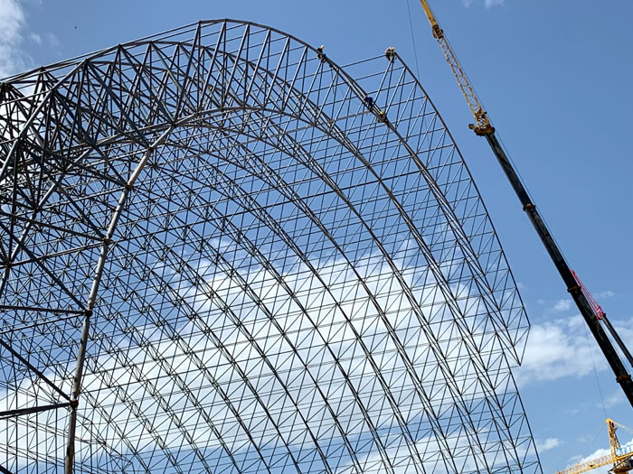 (2)网架加工前应对现场尺寸进行复测,确认无误后方可进行加工、安装;网架制作、运输、安装应遵守《空间网格结构技术规程》JGJ7-2010、《钢网架海城螺栓球节点》JG/T 10-2009、《钢网架海城螺栓球节点用高强度螺栓》 GB/T 16939-2016、《海城钢结构海城工程海城施工规范》 GB50755-2012、《海城钢结构海城工程施工质量验收标准》 GB50205-2020。